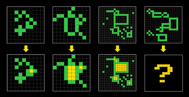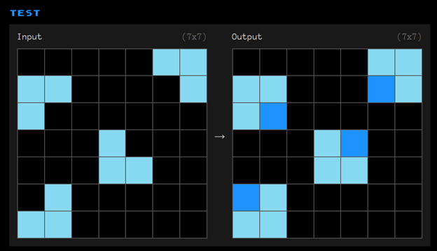 ARC-AGI-tehtävä on yllättävän vaikea nykyisille state-of-the-art tekoälymalleille. Ne epäonnistuvat tehtävässä, koska tehtävät ja ratkaisut eivät ole osa niiden koulutusdataa ja ne eivät osaa yleistää esimerkeistä löytyvää lainalaisuutta.